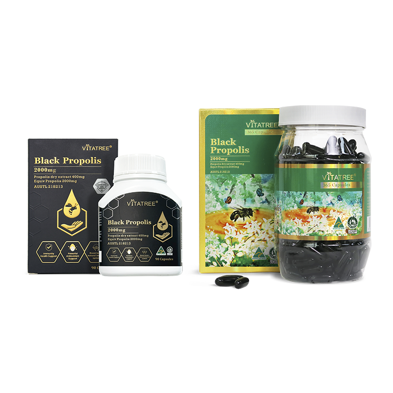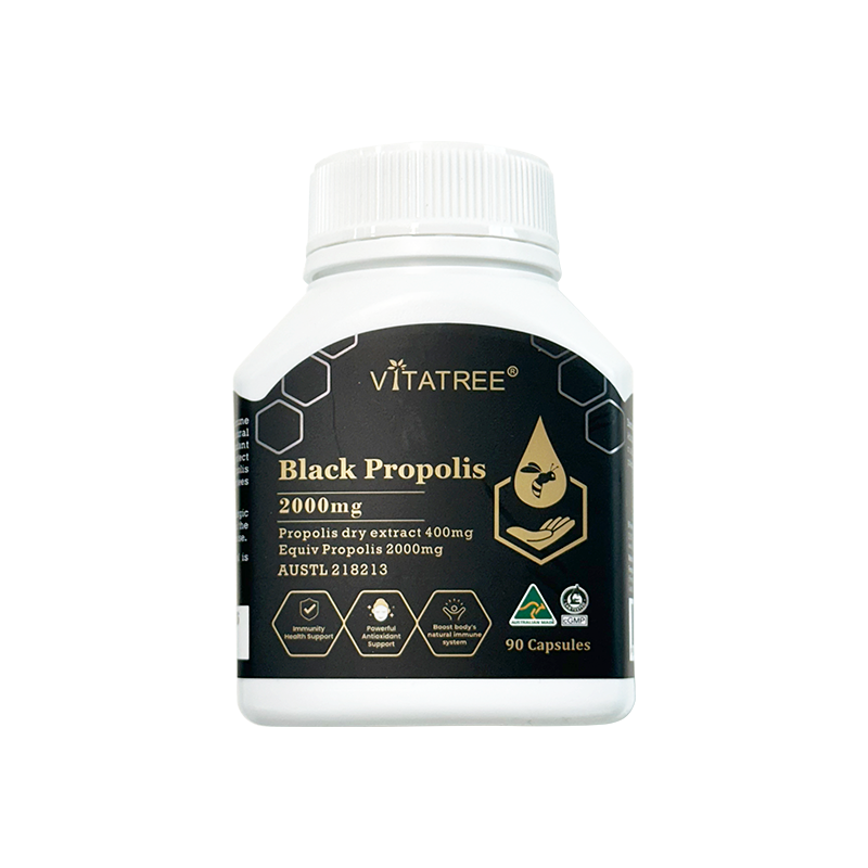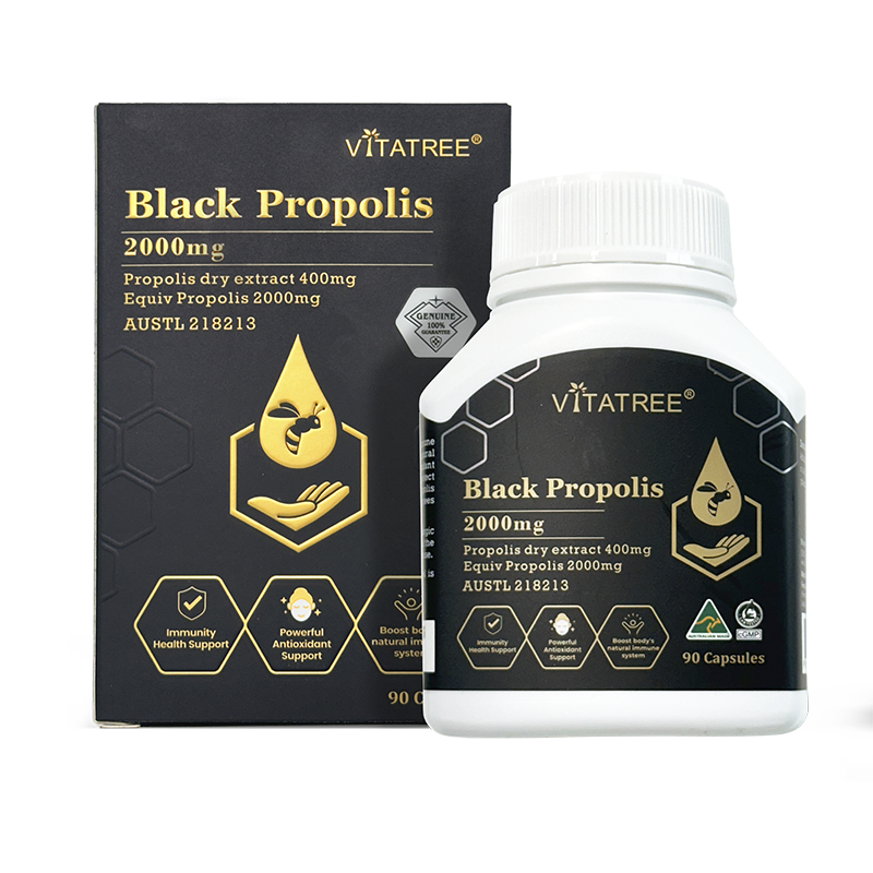 Vitatree Black Propolis 2000mg contain propolis, which is a pure, organic substance that is collected by bees from the leaf buds and bark of certain trees. Bees utilize this substance to protect the hive from germs, keeping bees healthy and free from diseases in their crowded environment. Propolis is a complex substance containing flavonoids, amino acids, vitamins A, B, C, and E, as well as numerous amounts of minerals such as copper, iron, manganese, and zinc.